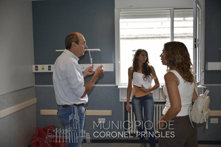 La Intendenta Interina Rosana Amondarain, junto a Diego Pelegrinelli, Secretario de Planeamiento, Obras y Servicios Públicos, y Belén Lucarelli, Dirección de Obras e Infraestructura, recorrieron las nuevas habitaciones del Hospital Municipal, que se encuentran en la etapa final de refacción.
