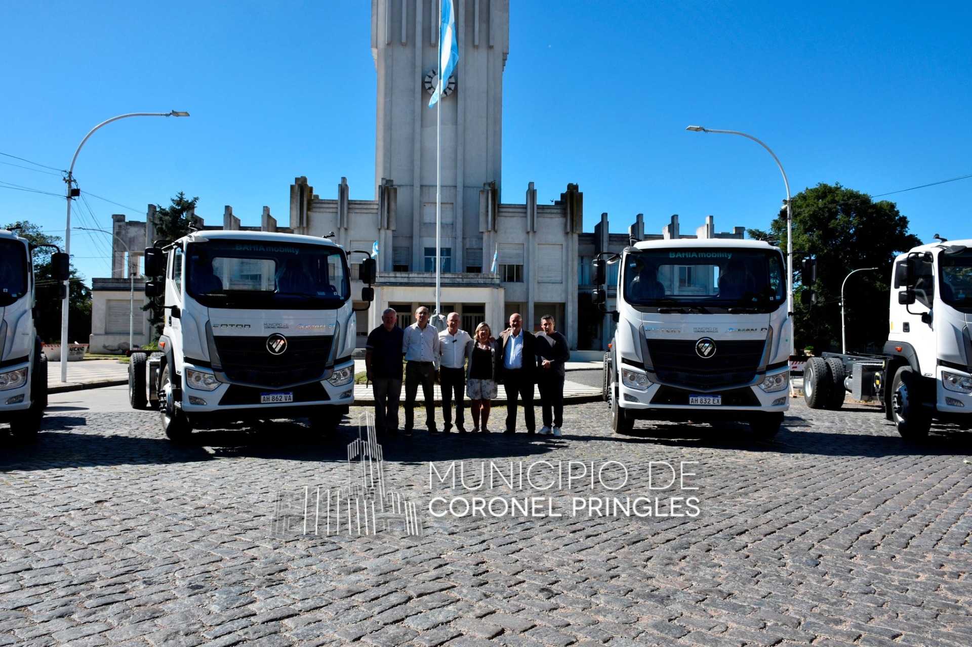 Frente al Palacio Municipal, se realizó la presentación oficial de los cuatro nuevos camiones destinados al servicio de recolección de residuos, en el marco del proceso de renovación del parque automotor municipal que la comuna viene sosteniendo desde hace un poco más de 10 años.