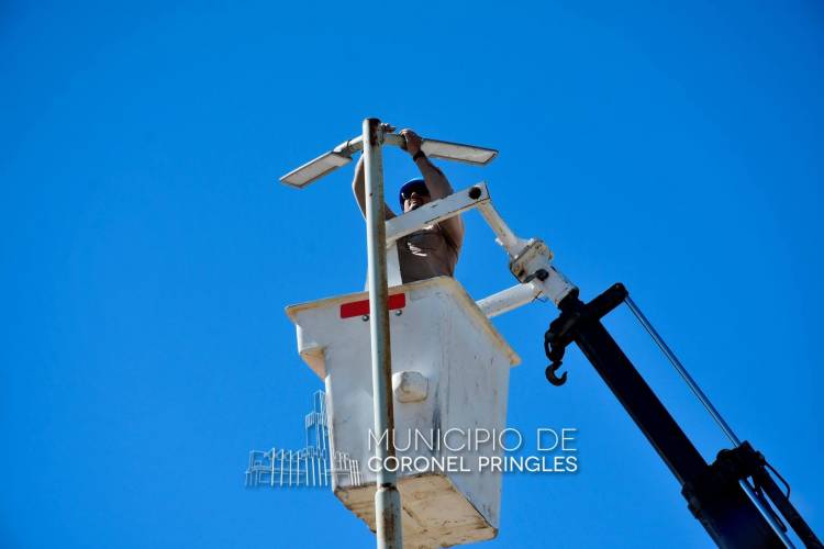 En un trabajo colaborativo entre el Municipio de Coronel Pringles, Vialidad Provincial (Delegación Bahía Blanca) y la Cooperativa Eléctrica de nuestra ciudad, en la mañana de hoy personal de la Cooperativa comenzó el recambio de luces en la rotonda de RP 51 y RP 85 (sentido Tres Arroyos).