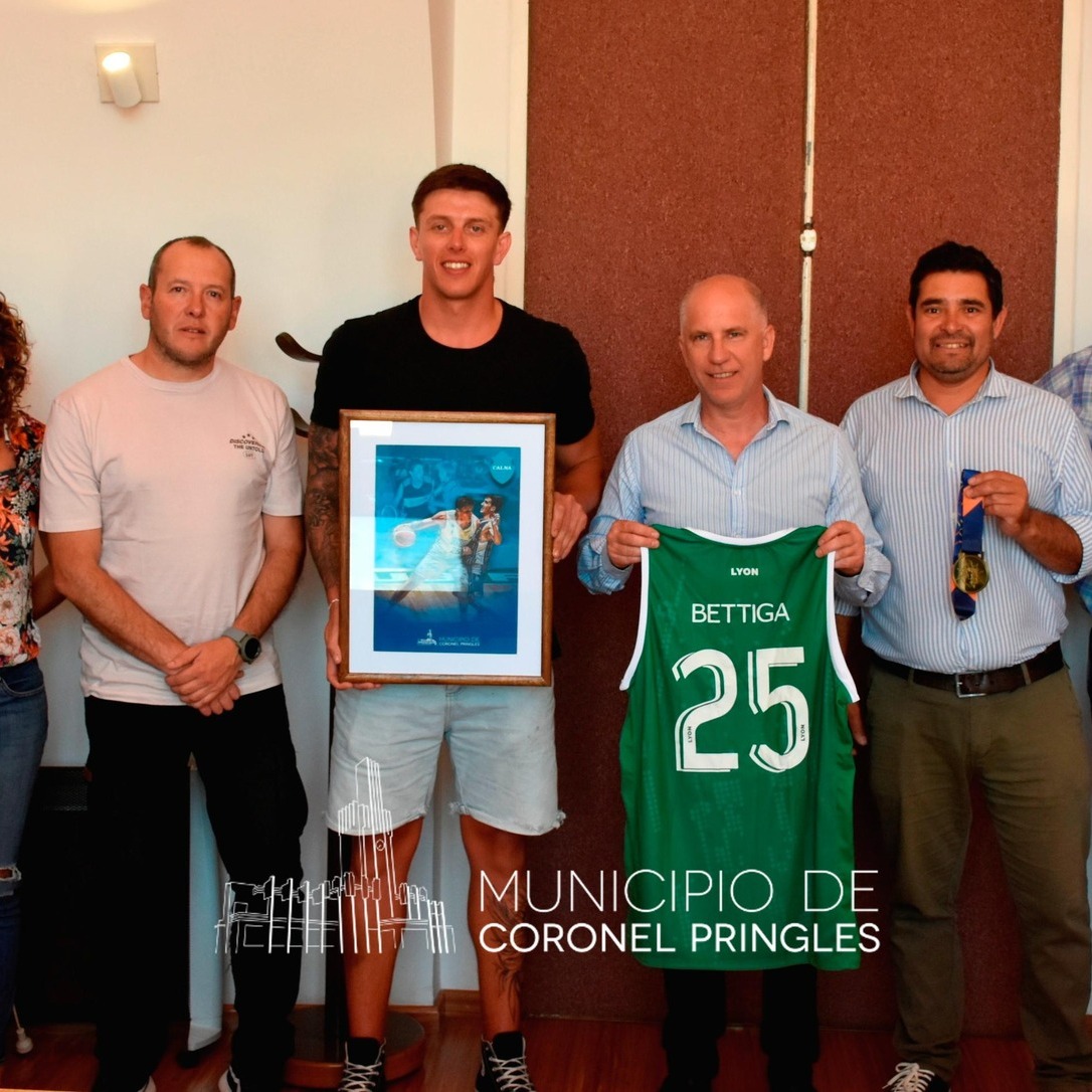 El Intendente Municipal Lisandro Matzkin, recibió en su despacho al basquetbolista pringlense Valentín Bettiga, actual jugador del Club Ferro Carril Oeste, con quien recientemente obtuvo el Campeonato Sudamericano de Básquet.