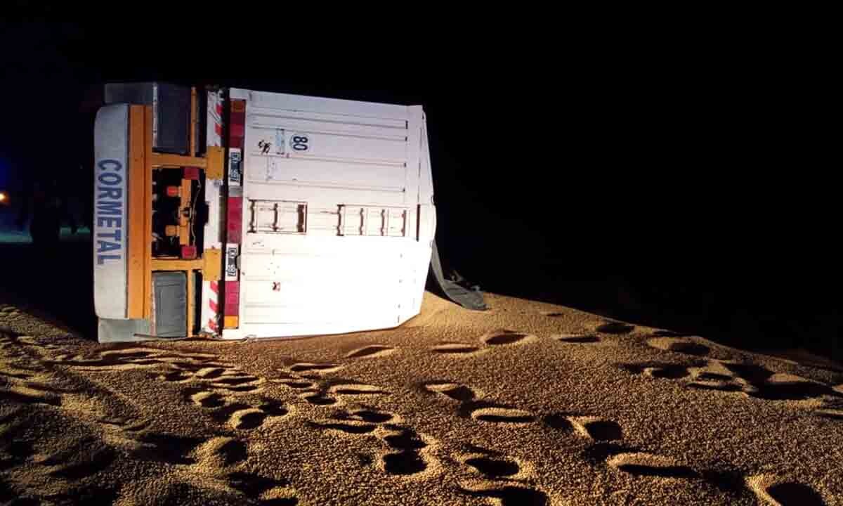 Un camión cerealero volcó el sábado por la noche sobre la Ruta 51, en el tramo comprendido entre la bajada del Dique Paso de las Piedras y el sector conocido como los "Siete Puentes", lo que generó un corte total de la circulación.