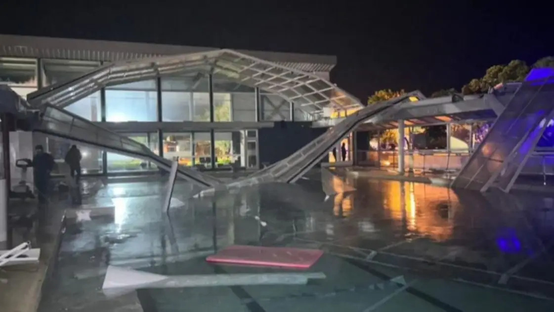 Además, la cola de tornado rompió por completo el techo de una pileta climatizada.