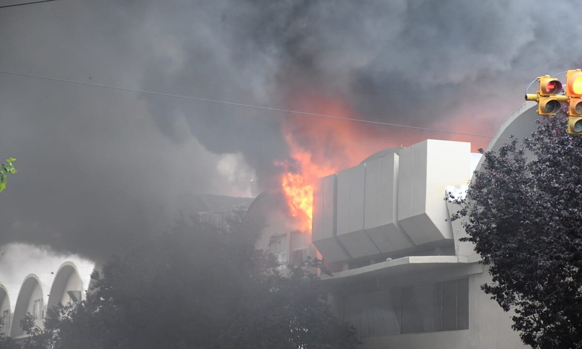 Trabajan Bomberos y Defensa Civil. Las instalaciones de La Coope fueron reinauguradas hace pocos días, tras la inundación de marzo.