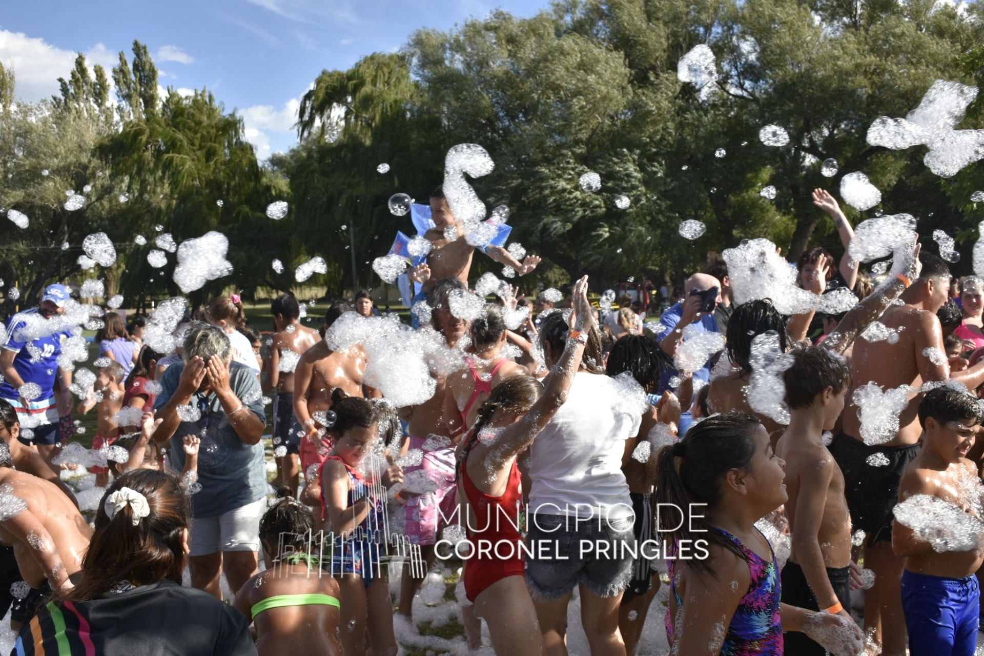 El pasado sábado 28 las áreas de Deportes, Cultura y Personas Mayores y Discapacidad realizaron el cierre de sus actividades de la temporada estival con juegos acuáticos en el sector de piletas y en el espejo de agua; dejando para el final la fiesta donde grandes y chicos disfrutaron con mucha alegría. Eugenia Cavallaro (Directora de Cultura), Evangelina Valderrey (Personas Mayores y Discapacidad) y Saúl Etchart (Director de Deportes) coincidieron en el buen trabajo en equipo realizado durante la temporada y con mucho entusiasmo para lo que viene de ahora en más y seguir por la senda del trabajo en conjunto.