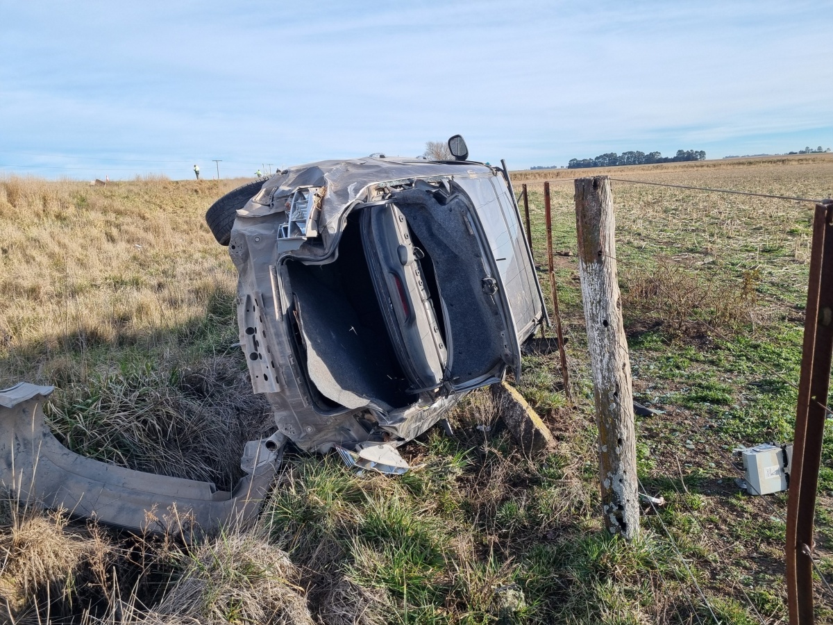 El rodado que conducía volcó y dió contra un alambrado. Afortunadamente la persona pudo salir por sus propios medios y fue derivada al hospital por precaución