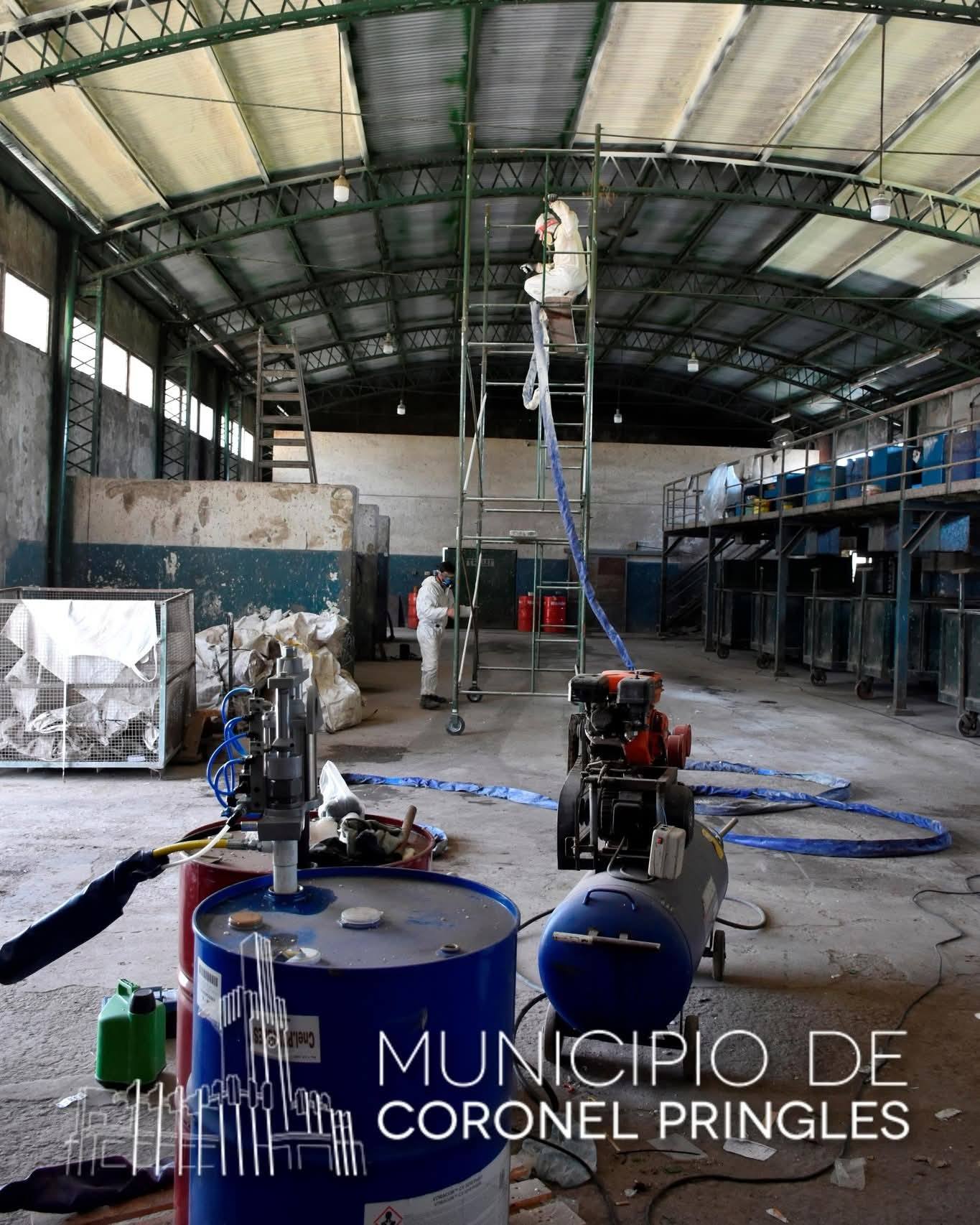 Esta semana comenzaron los trabajos de colocación de espuma proyectada de poliuretano en el techo de la nave de clasificación de la PTRSU. Ángela Bohn, Directora de Ambiente y Espacio Público, explicó que lo que se está colocando "es un material térmico, aislante y acústico permitiendo que el clima en la nave sea óptimo tanto en el invierno como en...